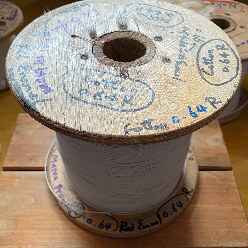 この線材はコットン巻きですが、中のエナメル線はシルク巻きの線材と同じです。